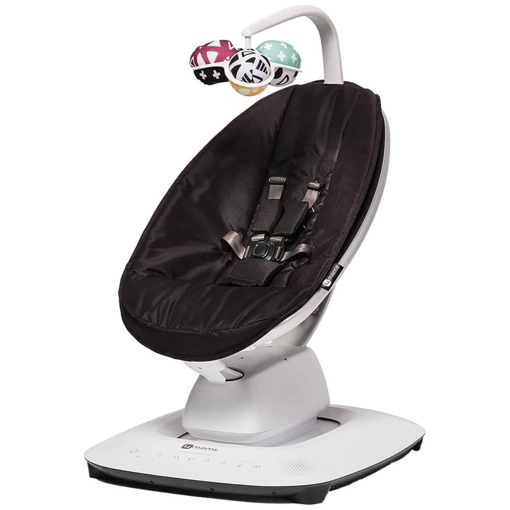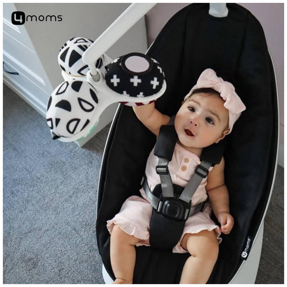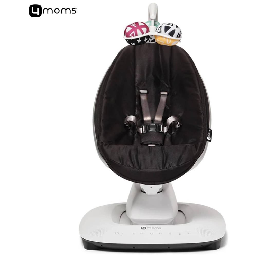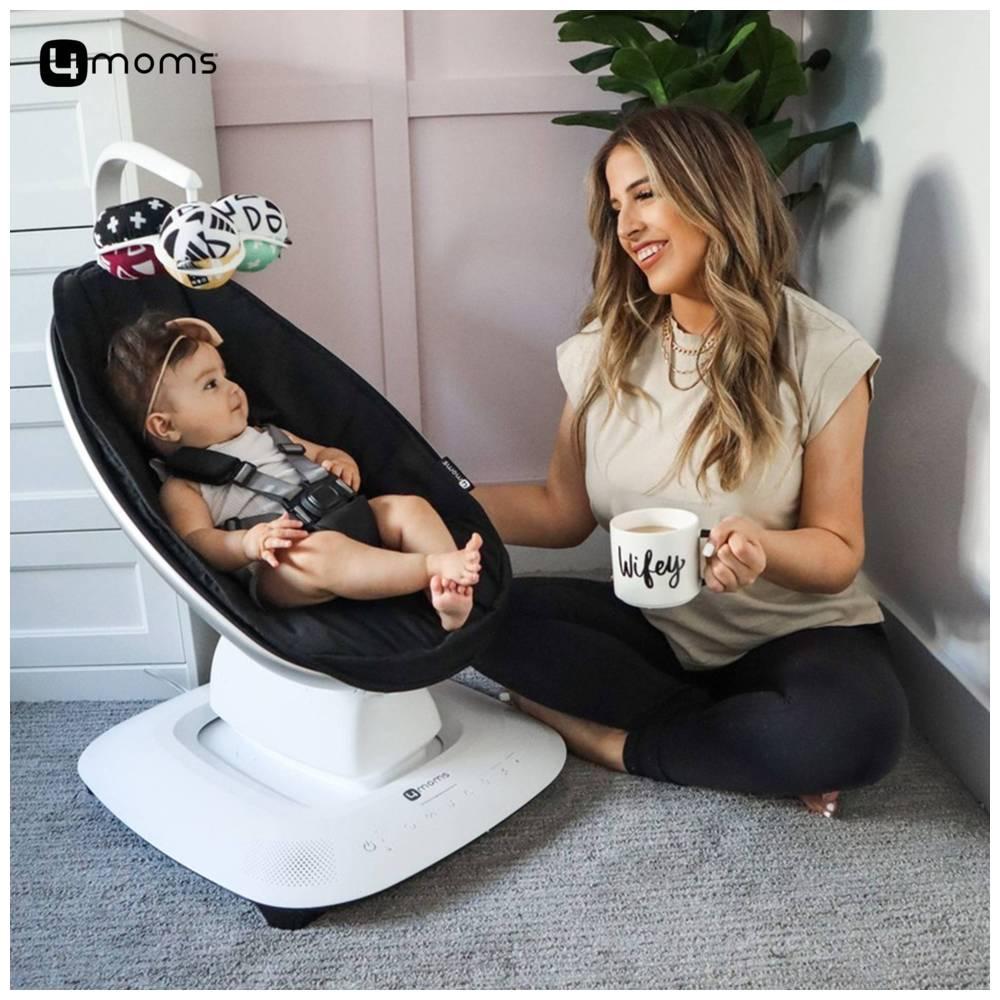 The MamaRoo Multi-Motion Baby Swing is designed to mimic parents' natural rhythms and movements, providing a familiar and secure space to place the baby when they can't be held. With 5 parent-inspired motions, 5 speeds, and 4 built-in sounds, parents can customize the experience to keep their baby entertained. The new Find Your Roo feature in the 4moms app helps identify the best motion and speed combination for a seamless transition from arms to swing. Smart-home integration includes Bluetooth functionality for streaming music and adjusting settings through the 4moms app, as well as Wi-Fi compatibility for voice control with Amazon Alexa and Google Home (currently in Beta phase). The swing features an adjustable recline, a toy mobile with interactive, reversible toy balls, and a convertible harness that switches between a 5-point and 3-point setup as needed. It operates with an AC adapter, eliminating the need for batteries, and it assembles easily without tools. While the MamaRoo provides a hands-free moment for parents, this product is for supervised use while awake. If your baby falls asleep, move them to a flat, safe sleep surface for their comfort and well-being.