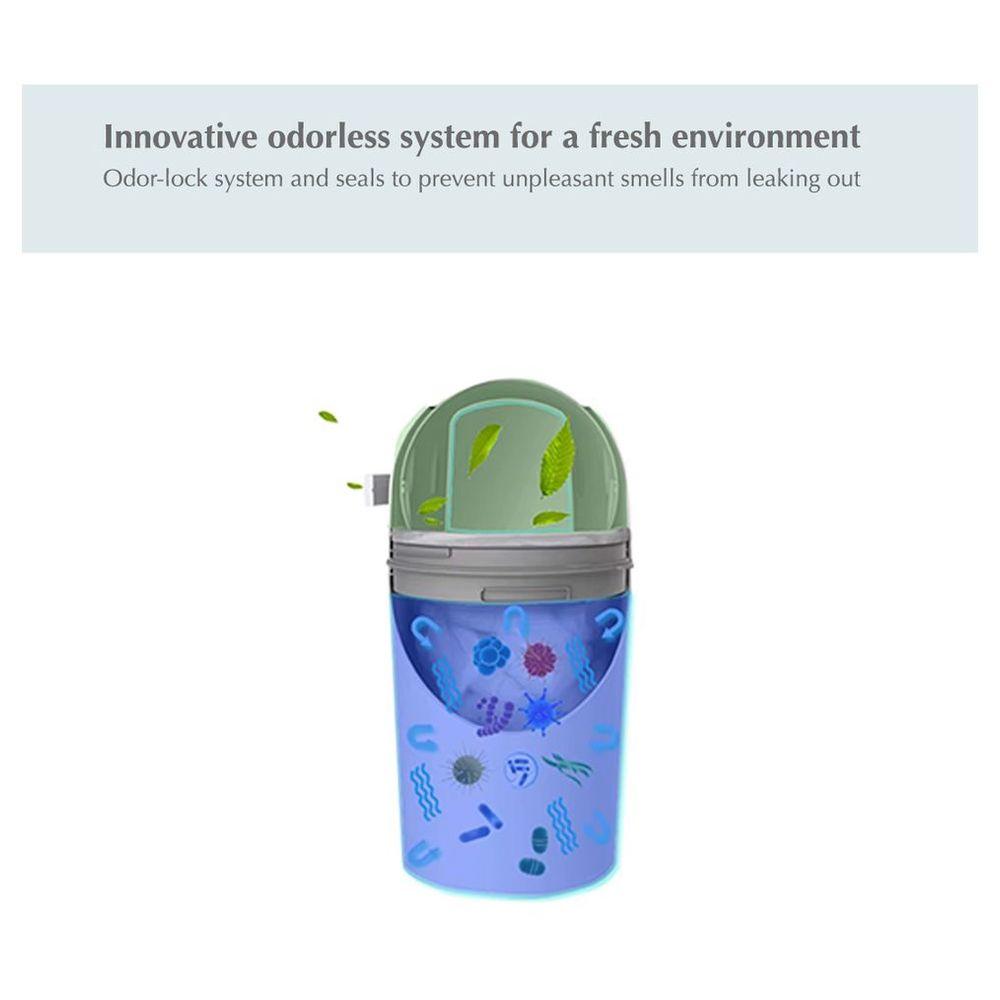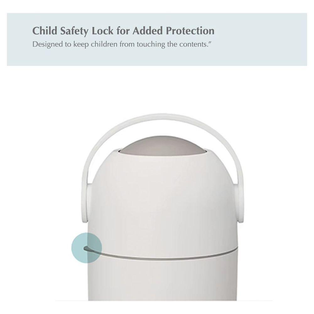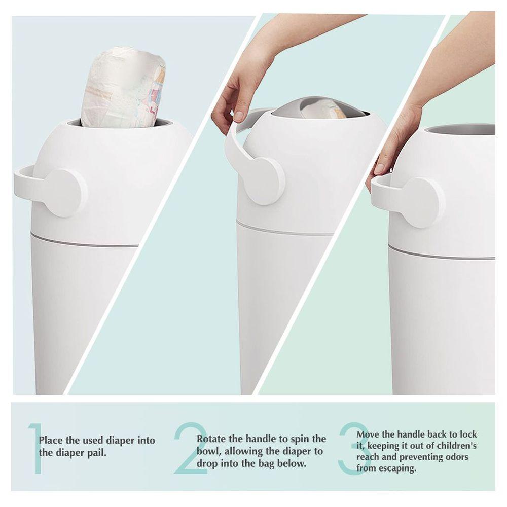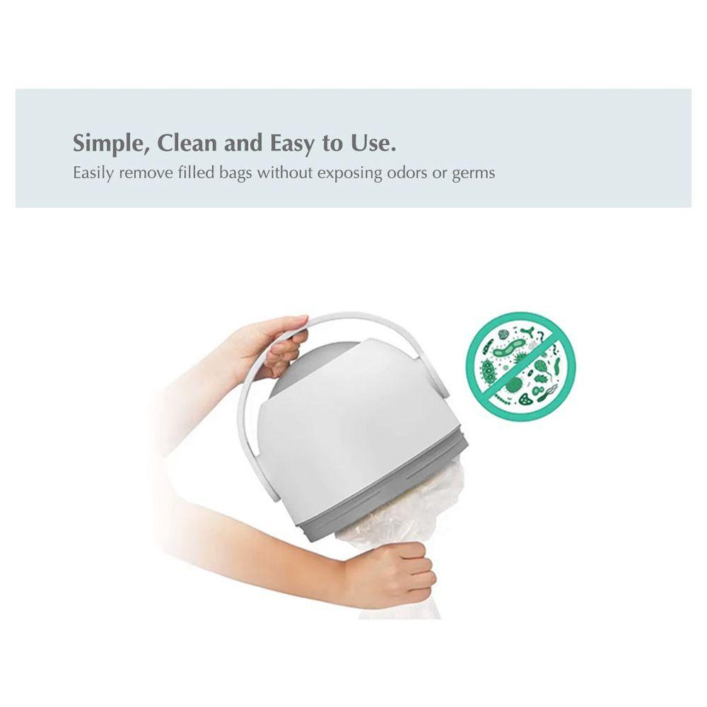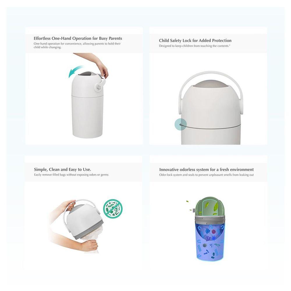 Say goodbye to expensive refills! This practical and stylish diaper pail works with any standard plastic bag, saving you money while offering convenience. Its ergonomic design in classic white seamlessly complements any nursery décor. Embrace the ultimate freshness and effortless style with Bumble & Bird.