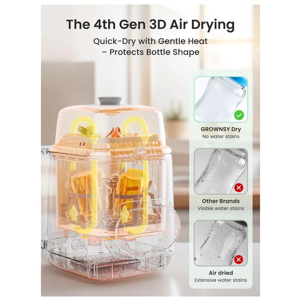 The washing system features high-pressure, rotating spray arms that target every angle inside the bottle. This ensures all residue - whether milk, formula, or juice - is removed completely, even from hard-to-reach spots. No more worrying about hidden buildup that can compromise hygiene.