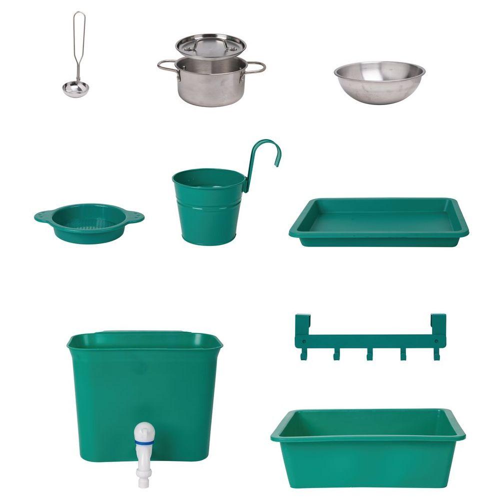 A: Yes! This is an "Outdoor Kitchen" or "Mud Kitchen." It features a water tank and a working faucet that allows water to flow into the removable sink.