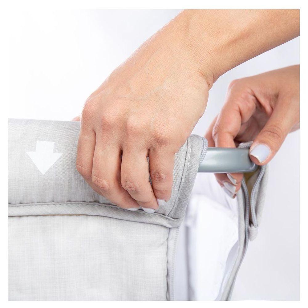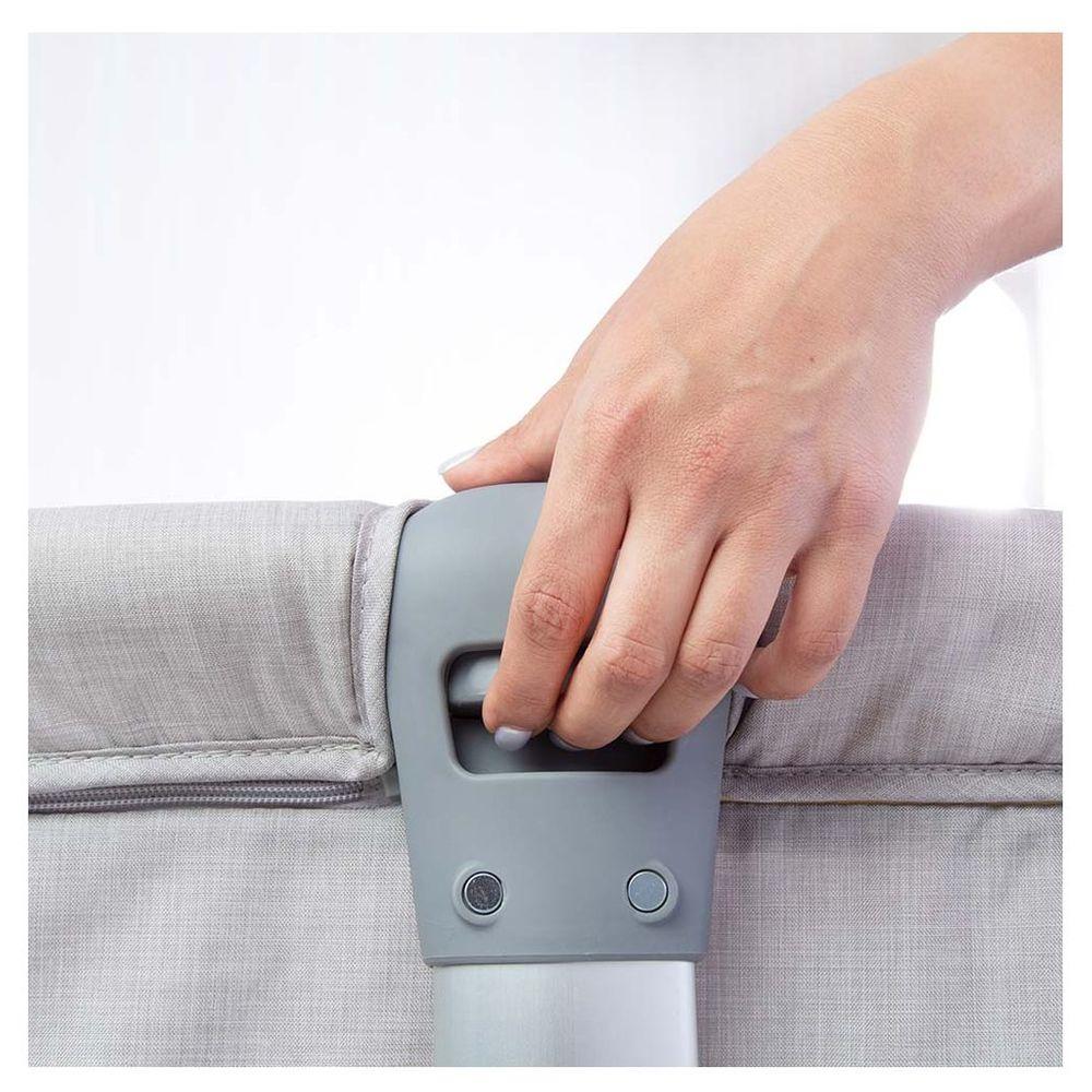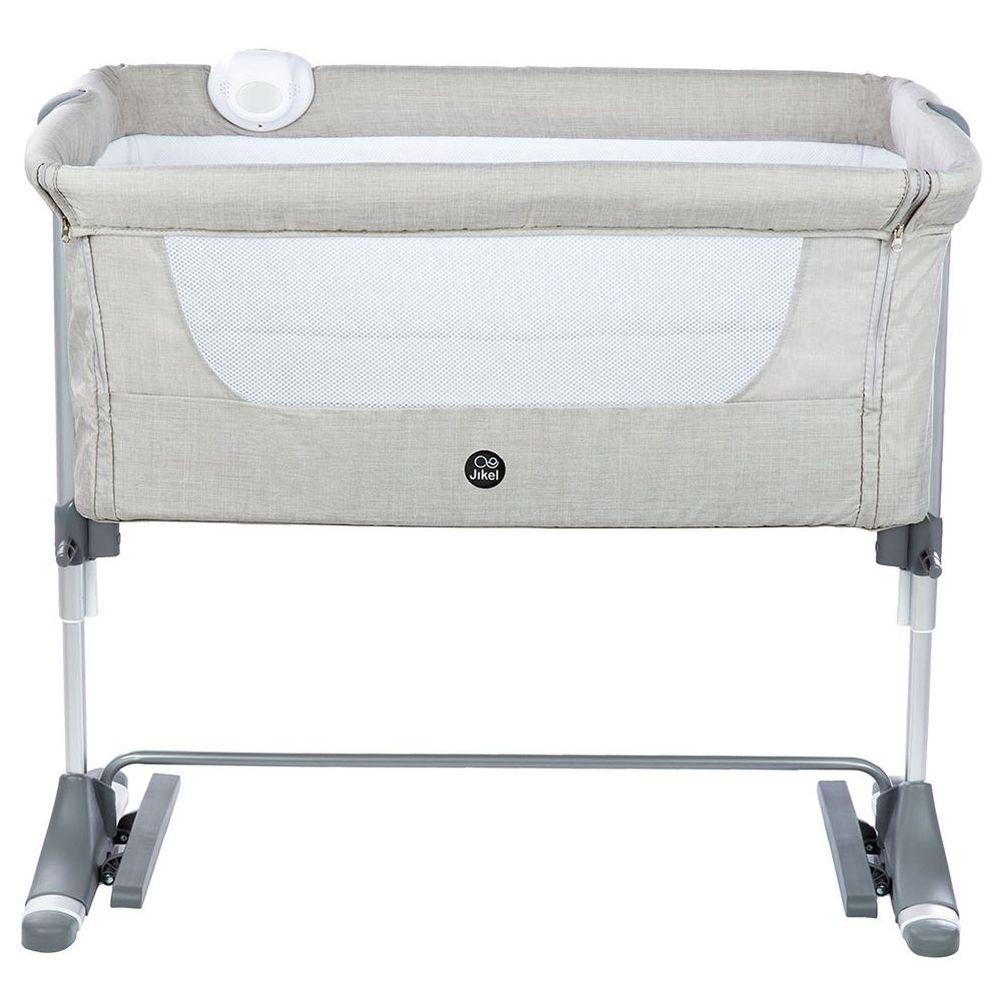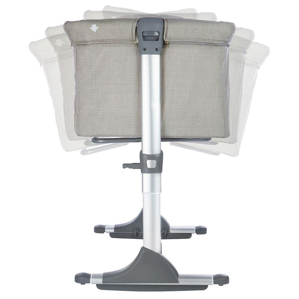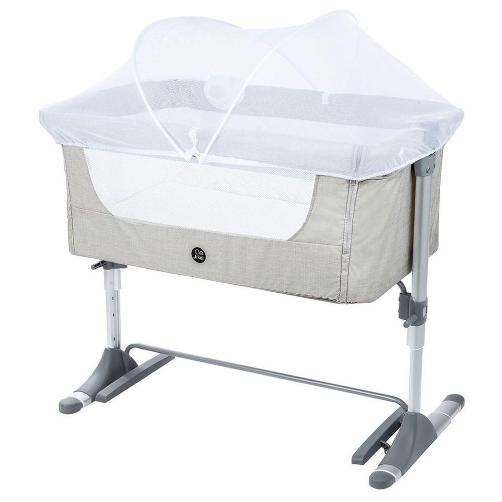 The crib is adjustable to four different heights (28cm to 46cm) to align with various beds, and can be angled slightly to aid with post-feed reflux. Practical accessories like a mosquito net and an easy-to-transport storage bag are included. Product dimensions are L 68 x W 58 x H 93 cm, and it weighs 8.39 Kg.
