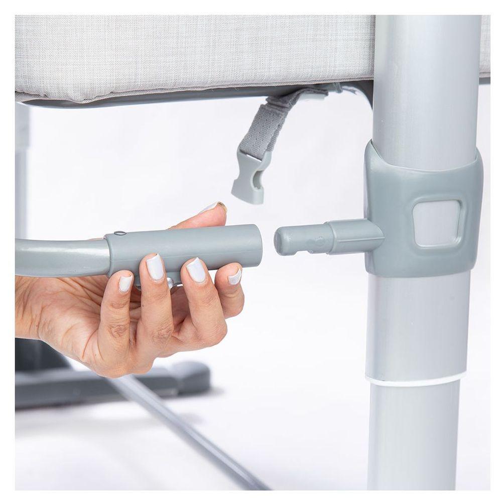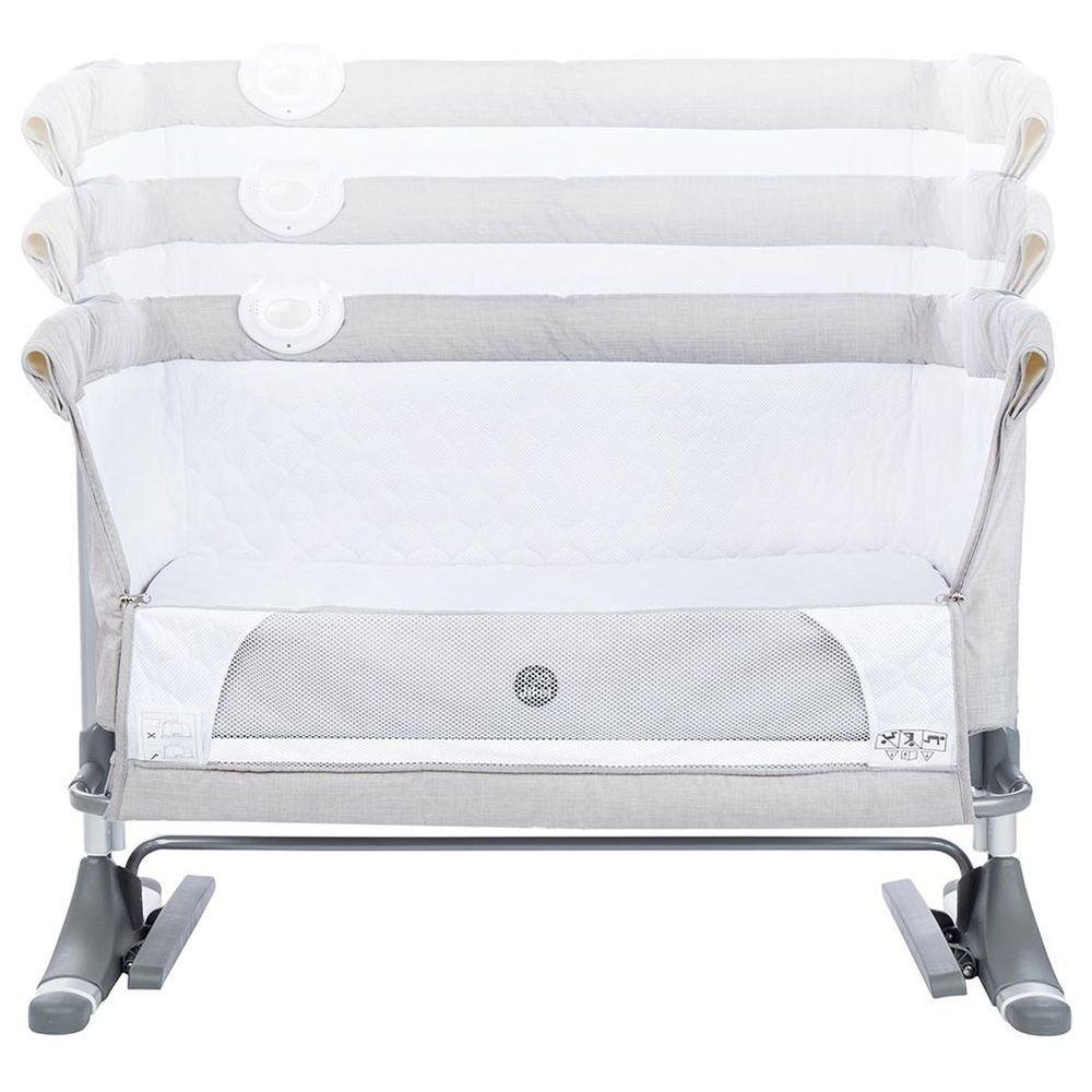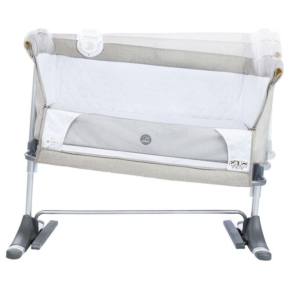 Welcome the Nova Bedside Crib, your perfect co-sleeping solution designed for ultimate comfort and closeness for newborns up to one year. This safe and cozy crib easily attaches to your bed, making nighttime feeds and bonding seamless. It features soft, breathable fabrics and a comfortable 85x50 cm mattress, prioritizing your baby's restful sleep. Key features include a built-in rocking function, a device that vibrates, lights up, and plays music to help soothe colic, and adjustable feet.